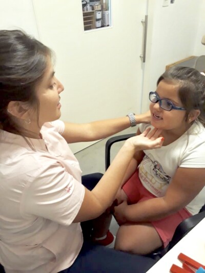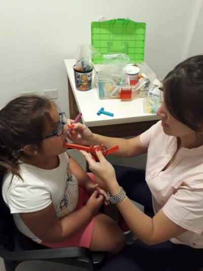 Habilidades alimentarias (deglución) tanto en niños con trastornos motores, sensoriales, o funcionales. Se busca rehabilitar las funciones del sistema fonoestomatognático, teniendo en cuenta la coordinacion fonorespiratoria, la postura y la sensorialidad oral. Aplicando conceptos de Neurodesarrollo, de rehabilitación de la deglución y de Integración Sensorial.