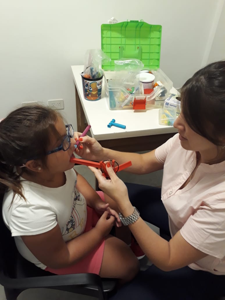 Habilidades alimentarias (deglución) tanto en niños con trastornos motores, sensoriales, o funcionales. Se busca rehabilitar las funciones del sistema fonoestomatognático, teniendo en cuenta la coordinacion fonorespiratoria, la postura y la sensorialidad oral. Aplicando conceptos de Neurodesarrollo, de rehabilitación de la deglución y de Integración Sensorial.